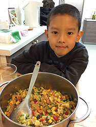 家住台中東勢的奕麒,是一位幽默可愛極具創意的國二生,熱愛料理的他隨時料理靈感一來,就會拉著「二廚」阿嬤一起下廚。同時奕麒也喜愛養各種動植物,平時總是帶著笑容和年輕人的活力,興奮地向我們介紹他養的寵物火雞,或是種植的蔬菜或果樹,做料理時專注、正經之餘,也常帶著一份自在。